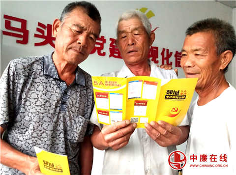 7月14日,山东省郯城县马头镇社区村街党员干部正在认真地阅读和学习郯城“5A考评”工作机制考评细则的宣传彩页。至此,郯城县在农村党员干部及群众中普遍展开了“5A考评”工作机制。