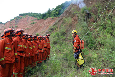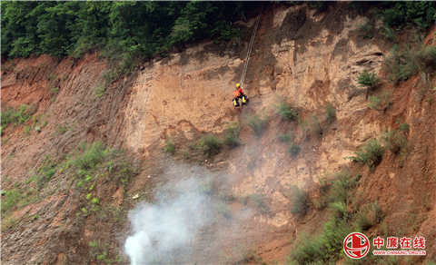 这个课目训练磨炼指战员的勇气和胆识,毕竟是地势陡峭的悬崖峭壁,同时身上还要背上一个水枪,下降至烟点位置用水枪将烟点扑灭。