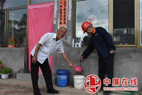 看到“清粼粼”深井水又流进了自家的水缸里,77岁的许二旦高兴地对笔者高兴地说:“群众吃水困难,供电师傅马上帮助解决,这两天正是高温天气,架线安装施工的时候,他们的汗水顺着脸颊脖子往下流,没有人喊苦叫累,我要为师傅们点个赞,供电服务就是好,共产党就是好!