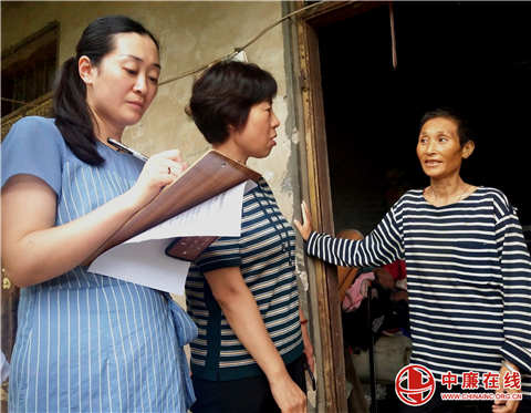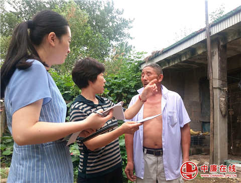 7月27日,“烟花”来临之际,山东省郯城县马头镇民政办工作人员正在马南社区后赵村孤寡老人匡广华家里,了解其房屋居住和家庭生活情况。