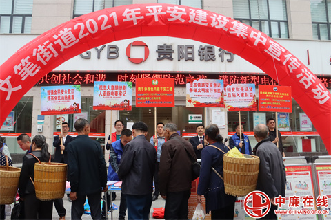 注重效率,多措并举保宣传。文笔街道三管齐下,多样化开展平安建设知识宣传活动。一是以街道办班子成员为主设置定点宣传队,集中力量在贵阳银行门口对赶集群众开展宣传。二是以派出所民警为主的流动宣传队,在街道辖区主干道进行游行宣传。三是以街道、村社干部、志愿者为主的宣传小分队,划片分区对沿街门面、小区进行入户宣传,做到纵横交错、覆盖全面。