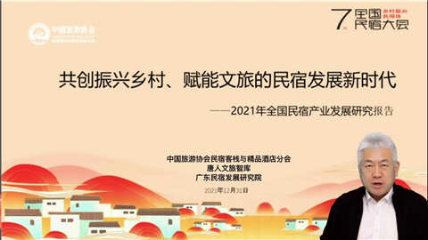 2021年12月30-31日,第七届全国民宿大会在云上召开。本次大会首次以网络直播的方式,主会场与分会场相结合、北京与各地相结合、大会与专题活动相结合的形式举办,小鹅通、小红书、狐椒文旅、新浪微博同步进行直播,来自五湖四海的文化旅游工作者和民宿从业者通过线上直播平台,以“民宿:乡村振兴共同体”为主题,共同就民宿发展与乡村振兴进行广泛交流。