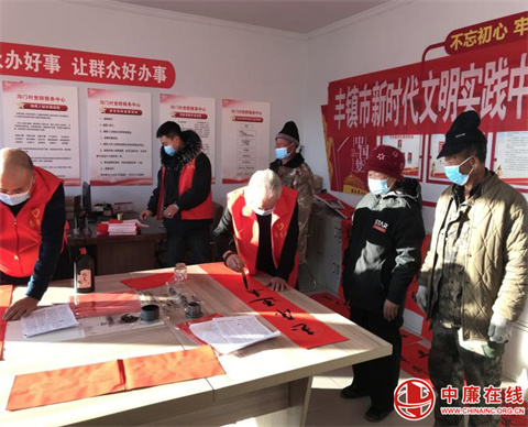 1月18日,内蒙古丰镇市新时代文明实践服务中心、南城区办事处新时代文明实践所、沟门村新时代文明实践站以深化党史学习教育“我为群众办实事”实践活动为抓手,在沟门村新时代文明实践站联合举办“迎春送福”系列志愿服务活动。南城区办事处宣传委员朱培芬同志、沟门村支部书记孙建文同志和沟门村村民参加活动。