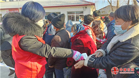 村民在工作人员的引领下依次进入采集区,通过扫描居民纸质版核算监测二维码进行信息采集,并为60周岁以上老年人、孕妇、残障人士等弱势群体设置绿色通道;