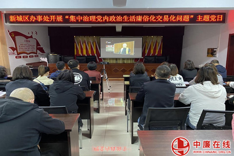 为认真贯彻落实丰镇市党委发布的《关于集中治理全市党内政治生活庸化交易问题的实施方案》,5月10日,内蒙古自治区乌兰察布市丰镇市新城区街道办事处机关党支部围绕“集中治理党内政治生活庸俗化交易化问题”开展主题党日活动。办事处全体党员干部参加了本次活动。