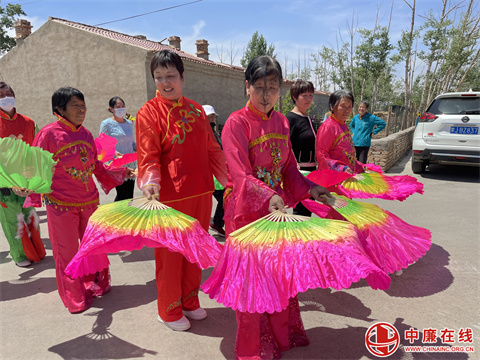结束包粽子之后,大家都换上了队服,红红火火的开始扭秧歌,她们身着色彩各异的绸装,排着整齐的队型,彩扇挥舞,轻快地踏着鼓点,有条不紊地扭着、跳着,锣鼓也紧跟着节奏。无论是看着还是跳着的村民,他们的脸上都洋溢着笑容,这不仅是过节的喜悦,更是生活幸福的体现。