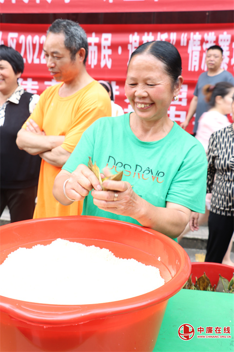 “现在国家政策好了,我们的生活越来越好,在端午节大家能聚在一起包粽子,特别热闹,我感觉很开心,很幸福,比赛包的粽子还可以免费送给我们,还是小区想得周到……”,在包粽子比赛中时不时传来群众的阵阵感慨。