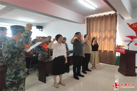 出队民兵代表王慧进行了表态发言,表示虽然退出了民兵队伍,但是在今后的工作生活中,依旧会依照军人的品格严格要求自己。接下来,新入队民兵进行了宣誓,入队民兵申楠代表新入队民兵在军旗下表明决心。