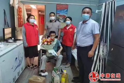 日前,安徽省宿州市埇桥区委统战部、区党外知识分子联谊会部分成员一行十余人,在南关街道、恒馨社区工作人员的陪同下,冒着高温慰问辖区退役军人芦向东、张晓军及韩怀忠夫妇。慰问组把大米、食用油、鸡蛋等慰问品送上并向他们献上鲜花,祝愿退役军人们健康快乐。