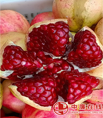 鸡噜村所种植的突尼斯软籽石榴籽粒剔透似宝石,果味浓郁甜似蜜,籽小而软,清爽可口。剥开外皮,一次性抓一把,咬上一口汁水四溢,使人感到淋漓畅快、身心飞扬,再加上营养丰富,深得广大消费者喜爱。