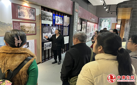图为建设银行退休老同志走进罗世文史料陈列馆开展缅怀活动