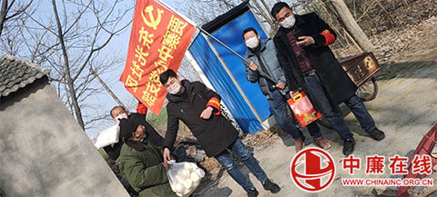 自从各个村庄路口建立劝返点时贫困户葛振海就没有外出过遵守了现行的冠状病毒疫情防控工作的支持与配合,关键时期为了广大群众身体健康和正常生活除了大型超市以外各个小店铺都要关门。自从新型冠状病毒疫情防控以来贫困户葛振海家庭2口人两个人的年龄较大,到外面购买物品困难的问题上2020年2月10日东光社区贾寨中心支部书记王朝祥带领本支部成员王乐贾帅帅等成员到贫困户葛振海家进行问寒问暖并送去米、馍、面条等生活上的慰问物品,让葛振海感受到欣慰,并给精神上的帮扶和物质上的帮助,让葛振海从内心里说到感谢党、感谢政府培养出这么好的党员队伍,在这新型冠状病毒疫情防控工作这么忙的时间还抽出时间来到我家看我真是病毒无情人有情,再次感谢你们心里还想着我这无用的人,我也不能帮上什么忙只能在家呆着不给国家添麻烦。(柳芸平)