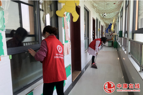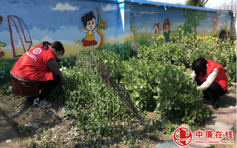 活动中,志愿者们戴好口罩和手套,身着红马甲,着重清理了幼儿园门前道路因拆迁掉落的建筑废弃物和生活垃圾。对园内楼道、走廊、扶手等重点的公共区域进行酒精擦拭消毒。同时将园内宣传栏进行擦拭,把损坏的版面进行修补和整理。春暖花开,杂草丛生,志愿者们给幼儿园种植区进行除草、浇水。在大家的共同努力下,校园及周边环境变得更加整洁美丽。