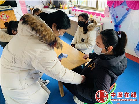 教职工上班时,由保安在大门口用体温枪依次检测入园教职工体温,无异常人员可在进行登记后入园开始工作。