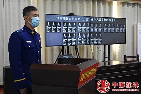 3月30日上午,新疆森林消防总队特勤大队隆重举行纪念木里“3.30”灭火英雄大会。会前,大队全体指战员集体默哀三分钟,表达对牺牲烈士的无尽哀思。会上,组织全体指战员观看纪录片《祖国不会忘记——谨以此片致敬木里凉山森林火灾中壮烈牺牲的英烈》,27名灭火英雄与火魔殊死搏斗,用自己的生命践行了“为党和人民奉献一切”的铮铮誓言,面对纪录片中的感人场面,指战员不禁默默流泪。