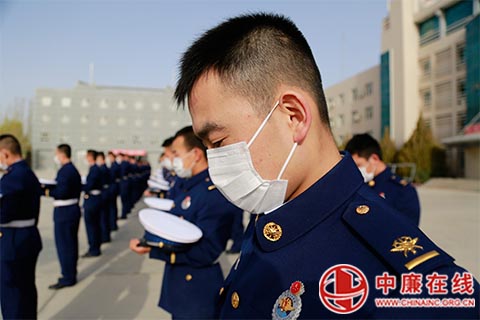 天地英雄气,千秋尚凛然。上午10时许,全体指战员队容严整,庄严肃立,随着指挥员口令的下达:“全体脱帽,向抗击新冠肺炎疫情斗争牺牲的烈士、逝世的同胞以及灭火战斗中牺牲的烈士默哀三分钟”,全体指战员表情肃穆,心情悲痛,向烈士脱帽致敬,表达对烈士的深切哀悼和崇高敬意,缅怀那些为了革命事业抛头颅、洒热血的革命先烈,表达全体指战员践行训词精神,传承烈士意愿的坚定决心。