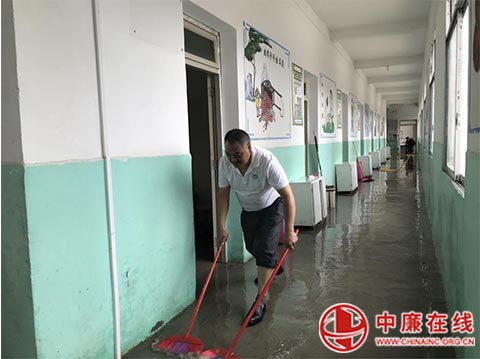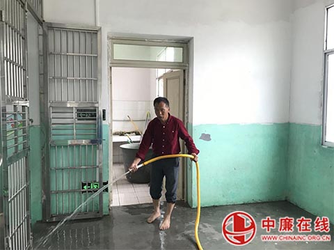 汪再明老师赤脚冲洗学生宿舍走廊