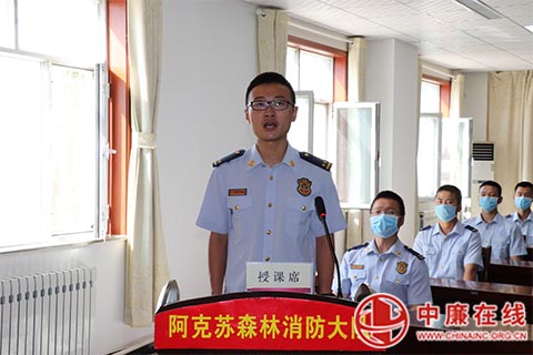 中廉在线6月21日讯:三尺讲台上展示“十八般武艺”。不见“硝烟弥漫”的三尺讲台,却有着思想碰撞出的智慧“火花”。6月20日,巴州森林消防支队举办了一场“硝烟味”十足的优秀“四会”政治教员评比竞赛活动,4名来自基层不同岗位的参赛选手同台竞技、一决高下, 其中既有功底深厚、思维活跃的指导员,还有训练场上的“武教头”、严肃认真的中队长。