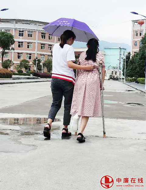 中廉在线7月9日讯:昨天上午(8日),在贵州省印江县印江一中考点,一名脚受伤的考生得到了考点老师的特殊待遇,由一中张金勇副校长亲自背考生送进考点,并由两名女老师“护航”扶进考场。