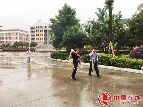 7月8日上午8:20左右,印江一中安检通道负责物品保管的熊小平老师,看到左脚打着石膏的女同学考生,杵着拐杖在其父亲的护送下进入考点。熊小平老师快步上前接过考生父亲的手,扶住了考生:“慢慢来!”随即同另一名老师把他搀扶过来,通过安检、体温测试。考虑到考生进入考场有些困难,负责后勤保障的印江一中副校长张金勇毫不犹豫把她背在背上,熊小平老师参与护送,将考生背到考点内的楼梯口,又一步步吃力地、气喘吁吁地背上楼梯,进入考场。