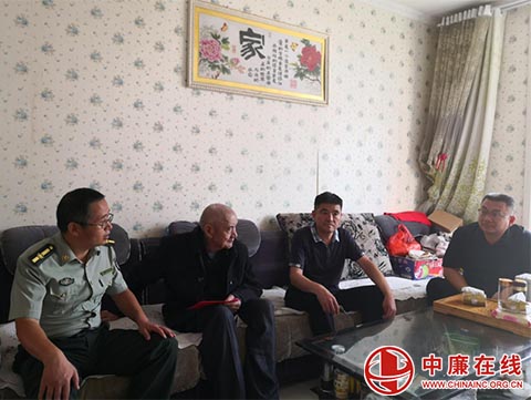顶着骄阳烈日,蒙城县杨景欢县长、庄周街道潘勇书记、武装部刘勇飞部长在十里社区志愿者们的带领下很早就来到老复原军人张洪顺家中,为老兵张洪顺送上慰问金并亲切交谈。