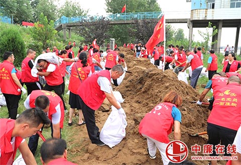 中廉在线8月15日讯:8月14日,山东省临沂地区连续发布暴雨红色、洪水黄色预警,临沂启动防汛三级应急响应,全力开展防汛抢险救灾。郯城县马头镇积极组织600多名志愿者奔赴现场参加守护大坝保护母亲河行动。
