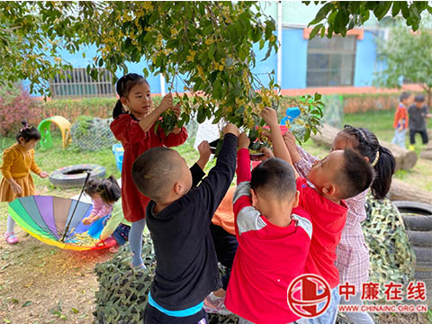 清芬袭人,浓香远逸,一阵清风掠过,桂花好似金色的蝴蝶,又似银色的彩带,随风摇曳飘落,飘到地上,好像铺上了一层金沙、银沙。醉人的景色引来了一群围观的孩子们,他们跳着喊着:“快看,下桂花雨啦,好美啊!”“这雨好香啊!”……孩子们的赞叹声此起彼伏,他们在桂花树下看一看、闻一闻、摸一摸,了解桂花的外形特征和气味,于是一段关于桂花的讨论便展开了……