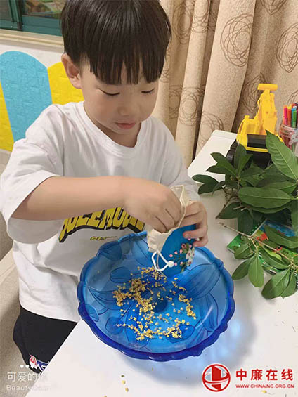 温暖的午后,泡一壶桂花茶。看到自己亲手筛选的桂花被制成了桂花茶,孩子们品尝起来一定是甜蜜快乐尝不尽。“桂花茶真香”“老师,你也尝一尝。”孩子们你一言我一语,沉浸在桂花茶的香气里。