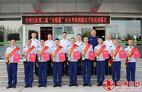 迪力夏提江获得支队比武预备消防士组第一名时合影留念(前排左二)