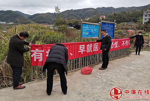 (2)在各村主干道拉起防疫横幅,号召广大村民一起加入到抗疫队伍中来。