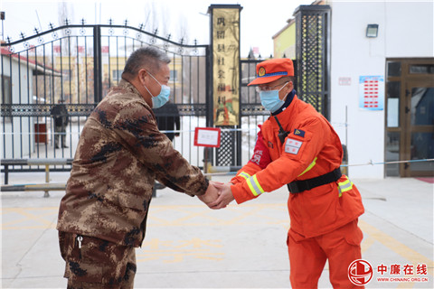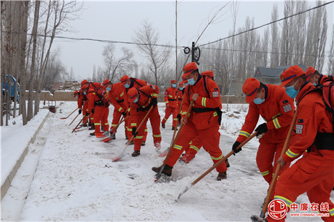当清晨的阳光洒进营区,队员们就早已把要捐赠的物资装载完毕,待早饭吃完,就乘车出发。当车辆驶进县福利院的小巷,队员们发现路面积雪结冰,严重影响了福利院内人员的出行,极易发生安全事故,队员们便迅速下车,立即投入“战斗”。吹过的风如“刀”一般“割”在队员的脸上,但队员们没有退缩,卖力地挥动铁锹铲除厚冰、清除积雪。经过一个半小时的奋战,队员们清除了约500米的冰雪路面。