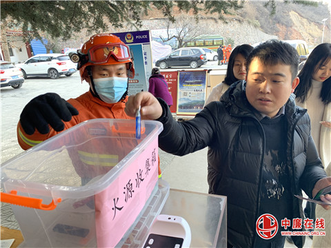 “你好,我们是新疆森林消防总队陕西驻防队伍,节日期间景区内严禁使用火种,请您交出火源,谢谢配合!”在景点入口处,执勤人员正在严密排查,收缴游客随身携带的火种。同时驻防队伍兵分多路,在景区重要路段及游客密集场所进行定点宣传,提醒进山游客注意林区防火,进一步强化火源管理和禁火措施,坚决从源头上杜绝火灾发生。