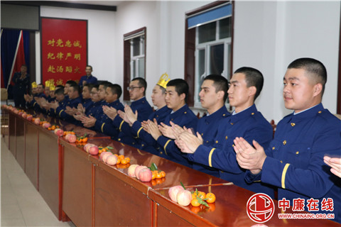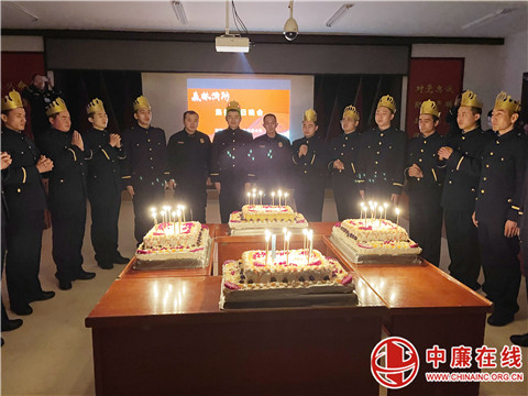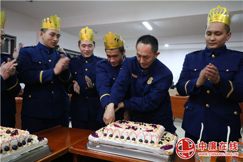 张鹏、孙先龙、李新全……你们几个留下来,等会一起去四楼会议室。”原本正准备去洗衣服的几位新消防员楞眼了,这是搞的哪出?原来是新训大队为让新消防员们到队后安心工作,更快适应紧张的队伍生活而精心筹划的一场“集体生日晚会”,16名12月份生日的新消防员“寿星”在相互的祝福下,一同感受着别样的生日聚会,满满的感动……