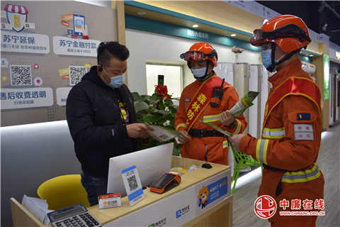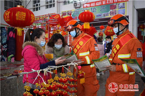 一抹橘红在前来商场购物的人群中穿梭,橘红的防火服在人群中格外显眼。指战员手捧宣传资料,深入广场、商场、街道等场所,向附近市民百姓发放防火宣传材料,面对面向他们讲解森林用火安全和火灾危害、如何扑救初期火灾等基本安全常识,科普防冰冻灾害常识,鼓励群众了解森林火灾危害、火灾自救常识以及森林防火相关要求,引导群众增强森林防火意识,自觉遵守森林防火规定,共同努力保护好驻地生态安全。