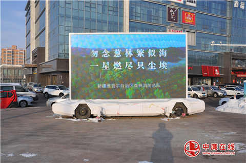 该大队充分利用小屏幕大力量的森林防火宣传教育的优势,结合户外LED的点多面广、时效性高、方便快捷的优势,主动协调广场、商场、电影院等人员密集多、流通广的地方设有LED显示屏、广告视频的社会单位播放《森林防火公益短片》、野外用火“十不准”等通俗易懂的宣传口号。