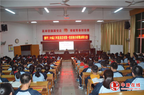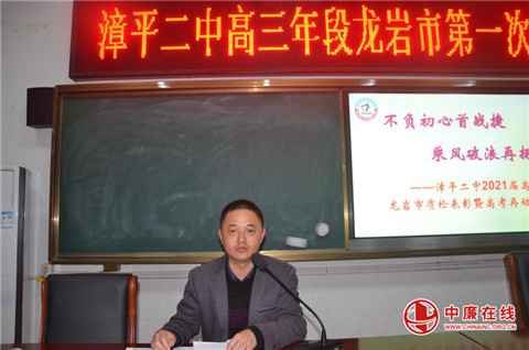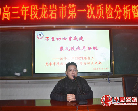 为营造浓厚的高考备考氛围,提高备考信心,力争2021年高考取得理想成绩,3月10日晚,福建漳平二中高三年段召开龙岩市第一次质检质量分析会。漳平二中校长张国志、副校长刘瑞锦及高三年段全体师生参加会议。