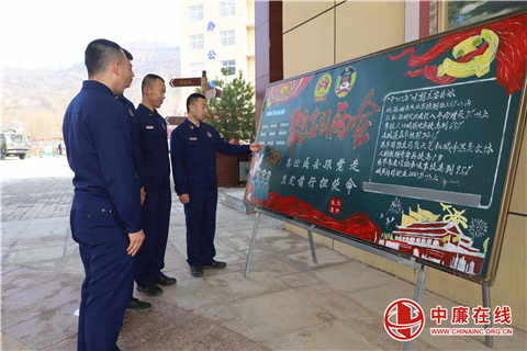 “滑动屏幕,搜索关键词‘两会’,海量信息扑面而来……”该驻防队伍充分利用学习强国APP、微信公众号、板报橱窗、中国应急管理报、人民日报等新媒体平台的辐射作用;抓住班务会、党团活动、训练间隙、‘三个半小时’等时机,见缝插针开展教育宣讲,让指战员与“两会”“零距离”接触,营造时时受熏陶、处处是课堂的良好氛围。