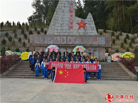 活动中,大家倾听困牛山村党支部书记张国玉讲述100余红军集体跳崖的壮举,对当时的战斗事迹作生动讲述,师生们深受感动、对烈士无比崇敬。在烈士纪念碑前,学生代表向红军烈士进献花圈并默哀,表达最崇 高的敬意;该校党支部书记李小艾作重要讲话,要求团员们要记住先烈,记住他们就是学习他们的精神,虽然时 间易逝,时代在变迁,但是烈士的丰功伟绩和精神不会逝去,我们应该努力学习先烈的精神,把这种精神与时代梦想结合起来,做新时代的楷模。教育学生一定要继承先烈遗志,奋发有为,为实现伟大复兴的中国梦作出贡献!