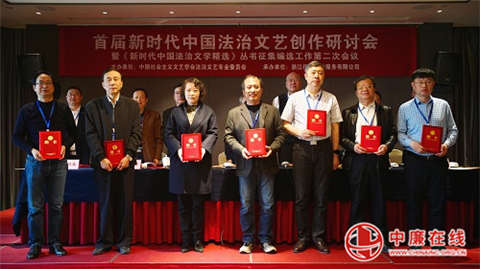 会议为首批19位“中国社会主义文艺学会法治文艺专业委员会特约作家”颁发了聘书,为“中国社会主义文艺学会法治文艺专业委员会杭州创研基地”进行了揭牌,为“中国社会主义文艺学会法治文艺专业委员会常务理事单位”授予了证书和牌匾。特邀嘉宾武运平、陈柳先、高洪根、杨佩明、廉松成应邀出席会议;中国社会主义文艺学会法治文艺专业委员会执行秘书长郑焰巍、副秘书长姜凤,办公室副主任刘娜,事业发展部常务副主任郑秀才,执行副主任宋志强,副主任高洪礼、余建军、李富全、徐纪良,主任助理石韶辉、苏日领、刘晨阳;中国社会主义文艺学会影视工作委员会副主席沈江平、副秘书长王俊翔、创作室副主任梅皓钧;中国社会主义文艺学会书画专业委员会联络部副主任李海玲等参加了会议。