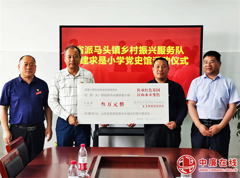 山东省省派郯城县马头镇乡村振兴服务进驻古镇马头,了解到了马头红色文化的源远流长,涌现出一大批可歌可泣的红色故事。像刘之言创建的鲁南第一支部旧址、罗荣桓红军小学、清真寺等都记载着革命英雄斗争史。为进一步弘扬沂蒙精神,传承红色基因,提高罗荣桓红军小学求实小学校区党史馆建设水平,在中国共产党成立100周年之际、六一儿童节前夕,省派郯城县马头镇乡村振兴服务队队员纷纷解囊相助,共捐助三万元红色教育专款。同时,希望求是小学发挥红色资源优势,突出特色亮点,积极地把学校党史馆建设与学校党性教育、红色教育融合发展,使其成为学校红色文化建设的新亮点。(高军 马圣秋)