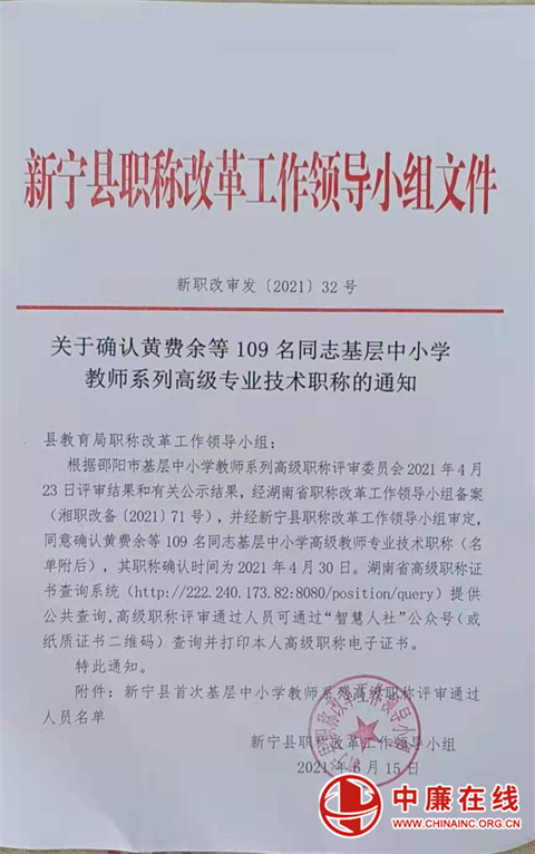 6月26日,从湖南省新宁县教育局传来好消息,新宁县109位乡村老教师通过评审,升入中小学高级教师,其中少数民族边远高寒山区麻林瑶族乡中心学校五位一直战斗瑶山教育教学等一线的老教师,全部晋升为基层中小学高级教师,得到了学校行政和老师的热烈欢迎。
