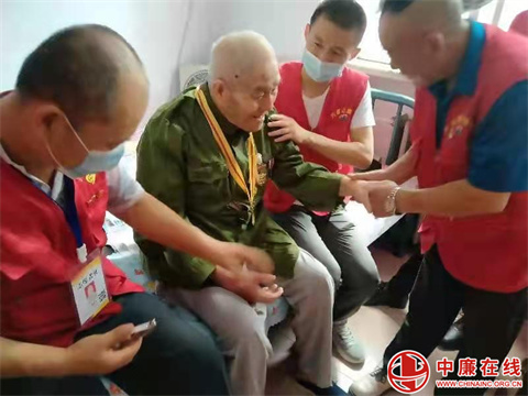 在八一建军节到来之际,为庆祝建党100周年,弘扬沂蒙红色精神,发扬拥军优属的光荣传统,张道明带领96名沂蒙志愿者兵分四路,前往山东省军区临沂离职干部休养所(三处休养所)及临沂荣军医院进行"关爱抗战老兵"走访慰问活动。