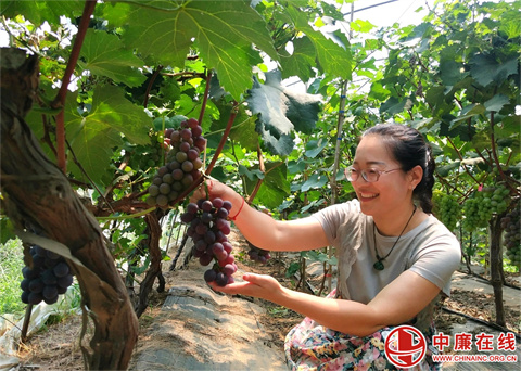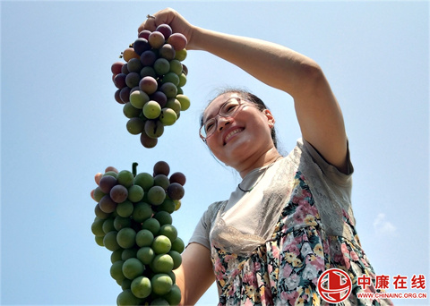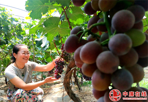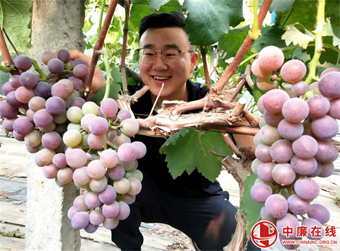 “瞧,葡萄园里一排排葡萄藤上挂满了果实,一串串颗粒饱满的葡萄让人垂涎欲滴,这就是辽峰葡萄着色好、裂果轻、甜度高,品质优,颗粒饱满、甘甜多汁、甜而不腻。”8月3日,在山东省郯城县马头镇采莲湖社区高楼村葡萄种植园里,葡萄专业户李富强正一边采摘葡萄,一边介绍自己的新品种。