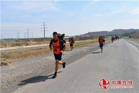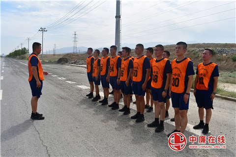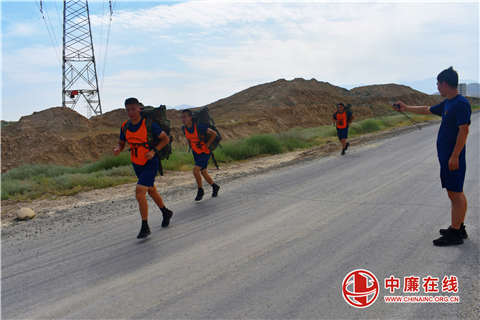 八月的新疆,骄阳烈日,室外的温度达到了35度左右,大家一路狂奔,热浪扑面而来,烤的指战员们皮肤发烫,身上的汗水浸湿了衣襟,浸到了眼睛里,背囊也几乎湿透,但是没有一个指战员叫苦叫累。跑步过程中,大家互相鼓励打气,“快,加把劲往前跑!”大家你追我敢,氛围浓厚。