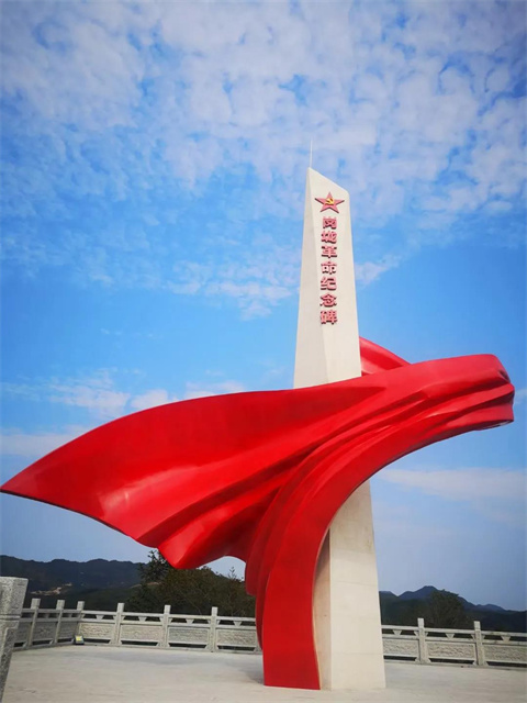 山顶上,一座雄伟的岗垅革命纪念碑傲然挺立,站在这里也许更能感受到当年老一辈革命家的昂扬斗志,令人不禁热血沸腾。纪念碑下就是红军洞栈道,如今蜿蜒盘旋的栈道,当年却是红军的绝处逢生之路,站在陡峭的山边仿佛置身于当年那生死一刻的紧要关头,步步如履薄冰。