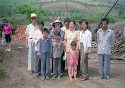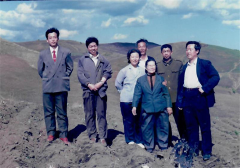 1995年5月26日摄于二路军总部遗址,前排中吴玉清,左一张学玉,左二冯秋复,左三吴玉清大儿媳赵艳芬,右一葛维升,右二苏将校,后右三李兴发。