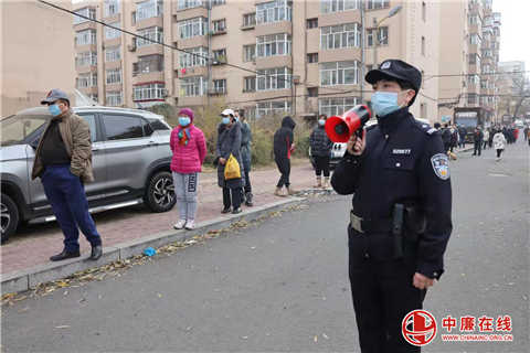 正当殷和健紧张奋战在疫情防控第一线时,他的妻子——平房分局出入境管理科副科长张楠,也同样在自己的岗位上战斗着。她在处理出入境日常工作的同时,还担负着封控小区24小时的执勤任务。“只要封控小区居民健康、无任何异常情况,再苦再累都值得。”寒风中,她带着哈气的话语让她忘却了多日的辛劳,更坚定了她疫情不退我不退的战疫决心。