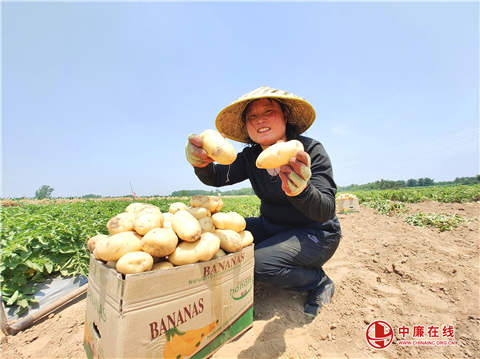 “瞧。今年种植的新品种荷兰806,如果不是遇到干旱少雨,这土豆亩产8000斤没有问题。荷兰806不仅脱毒、抗病能力强,而且个头也大,四两半斤的个头占多数。今年产量也有6000斤,当日每斤批发价格是0.85元,一亩也能净收入两三千元。”徐祇茹老人一边扒捡土豆一边分拣装箱高兴地介绍道。(高军 山东省郯城县马头镇党委)