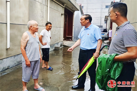 山东省郯城县马头镇马西党总支书记金少康带领社区工作人员和村街干部实地查看辖区内农户排水问题。益民村支部书记宋明浩组织党员干部入户排查老年住房情况,了解安全隐患。杨庄村抗洪抢险服务队,冒雨挨户排查老年房。高圩子村女书记吴艾清为幸福院疏通排水沟。仇高册支部书记张学东用手清理堵塞下水道的杂物等等。大雨之际,村街干部冒雨为民的鲜活事例处处可见,为马头镇谱写出雨中爱民新曲。(高军)