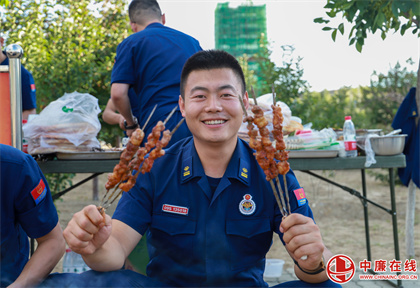 穿上火焰蓝,就选择了奉献,消防救援队伍就像一座大熔炉,不断地磨砺消防救援人员的血性和意志品德,让人变得坚强、勇敢、忠诚和奋进,虽然大家都是来自五湖四海,但在这里就像是一家人,看着这一串串美味的自制烧烤,大家脸上的幸福都快溢出来了。